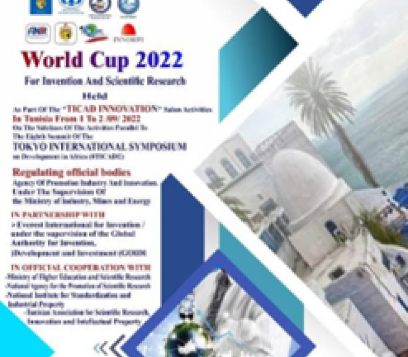 تستضيف البلاد التونسية اول بطولة كاس العالم للاختراع والبحث العلمي بمبادرة من منظمة افريست الدولية للاختراع و بالشراكة مع وكالة النهوض بالصناعة تحت إشراف وزارتي الصناعة والمناجم والطاقة و التعليم العالي والبحث العلمي وبالتعاون مع المعهد الوطني للمواصفات والملكية الصناعية والوكالة الوطنية للنهوض بالبحث العلمـي.