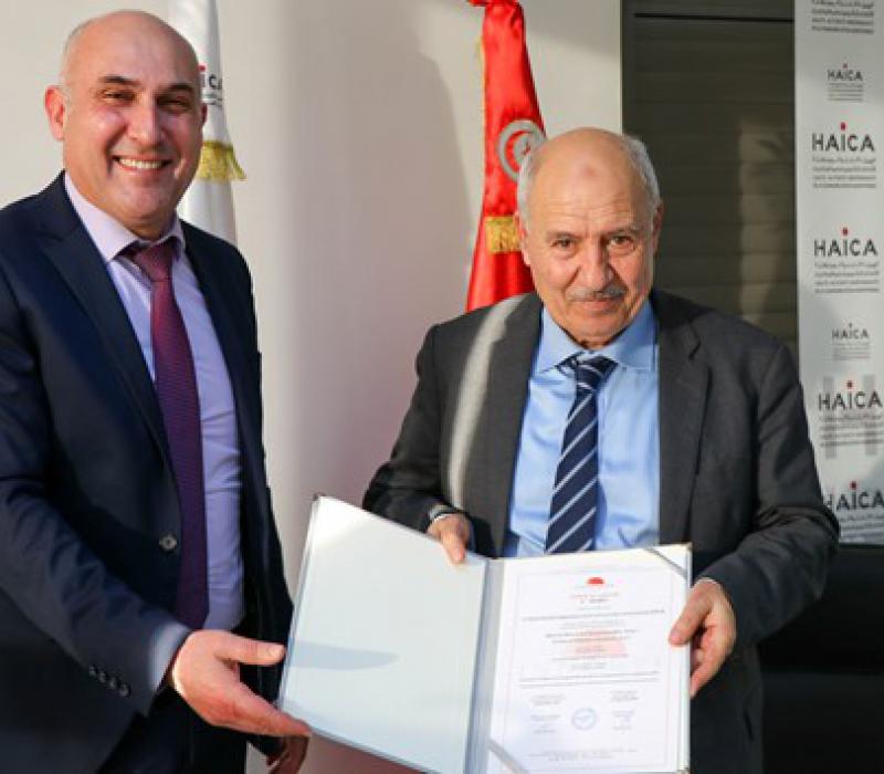 Lors d'une cérémonie organisée à cette occasion au siège de l'Autorité, Dr Riyad Al-Soussi, Directeur Général de l'Institut, a remis le certificat de conformité à ce Référentiel national à M. Nouri Lajmi, Président de la HAICA et ce, en présence des membres du bureau de l'Autorité, Mme Kawthar Naji, chef de l'Autorité Générale de Contrôle des Dépenses Publiques et d'une délégation de l’INNORPI.