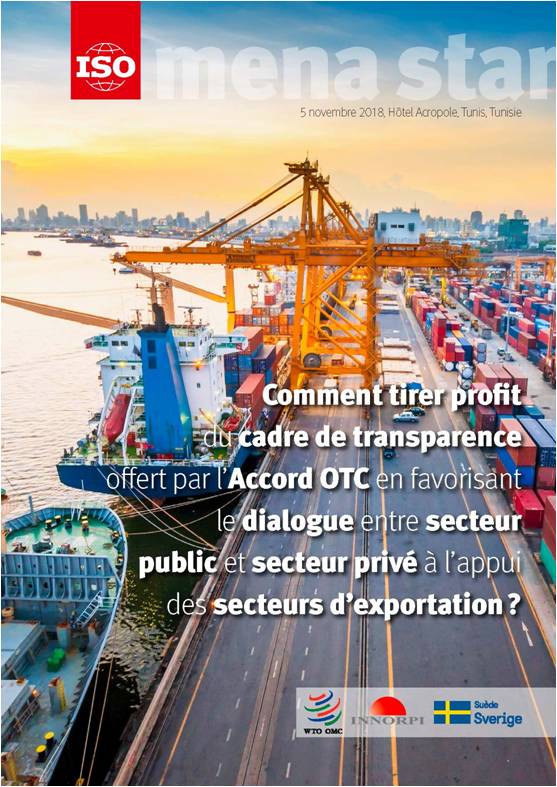 Dans le cadre du projet MENA STAR, l’INNORPI organise les 5 et 6 novembre 2018 à Tunis un atelier ayant pour intitulé :«Comment tirer profit du cadre de transparence offert par l’accord OTC en favorisant le dialogue entre secteur public et secteur privé à l’appui des secteurs d’exportation».