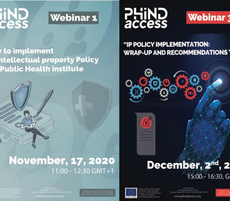 Dans le cadre du projet PHIND Access H2020, Work Package 6 (WP6), l'Institut Pasteur de Tunis (IPT) organise une série de webinaires du 17 novembre au 15 décembre 2020, portant sur la valorisation des résultats de la recherche et la gestion de la propriété intellectuelle.