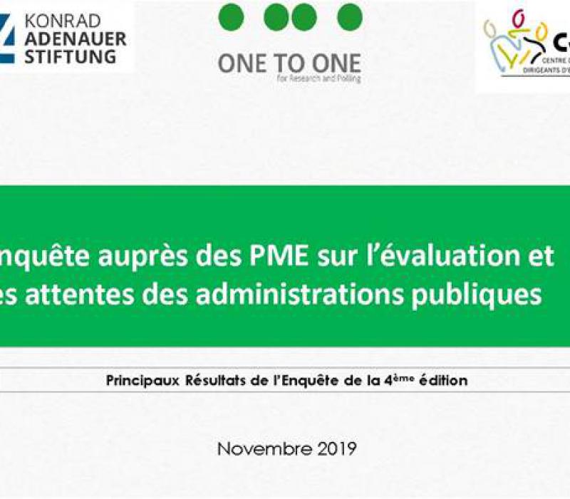 وتندرج هذه الدراسة، التي أنجزها مركز المسيرين الشبان ومؤسسة «كونراد ادناور» بالتعاون مع مكتب الدراسات «وان تو وان» للبحوث والاستطلاعات، خلال الفترة من 17 أكتوبر إلى 6 نوفمبر الجاري ، في إطار التعرف على مدى تطور خدمات عينة تتضمن 11 إدارة عمومية (المعهد الوطني للمواصفات والملكية الصناعية، مكاتب التشغيل، وكالة النهوض بالصناعة والتجديد، البنك المركزي التونسي، دار المصدّر، البلديات، السجل الوطني للمؤسسات، مكاتب مراقبة الأداءات، مكاتب الديوانة، القباضة المالية، الصندوق الوطني للضمان الاجتماعي) في علاقتها بالمؤسسات الصغرى والمتوسطة من خلال عينة من 500 مؤسسة في كامل ولايات الجمهورية.