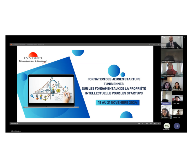 L’Académie Nationale de la Propriété Intellectuelle (INNORPI) a réalisé avec succès la première formation pilote en ligne sur le thème «Les fondamentaux de la Propriété Intellectuelle pour les Start-ups et les PMEs » en coopération avec l’Organisation Mondiale de la Propriété Intellectuelle (OMPI) et ce, du 18 au 21 novembre 2024.