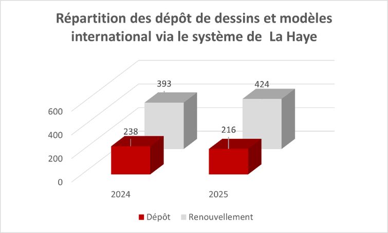 : Evolution des demandes durant les années 2024 et 2025Brevet d'invention Les Marques Dessins et Modèles Industriels